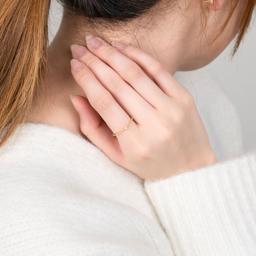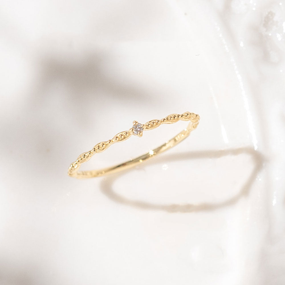 でも、さりげないデザイン性がプレーンな1粒リングとは違った魅力があります。