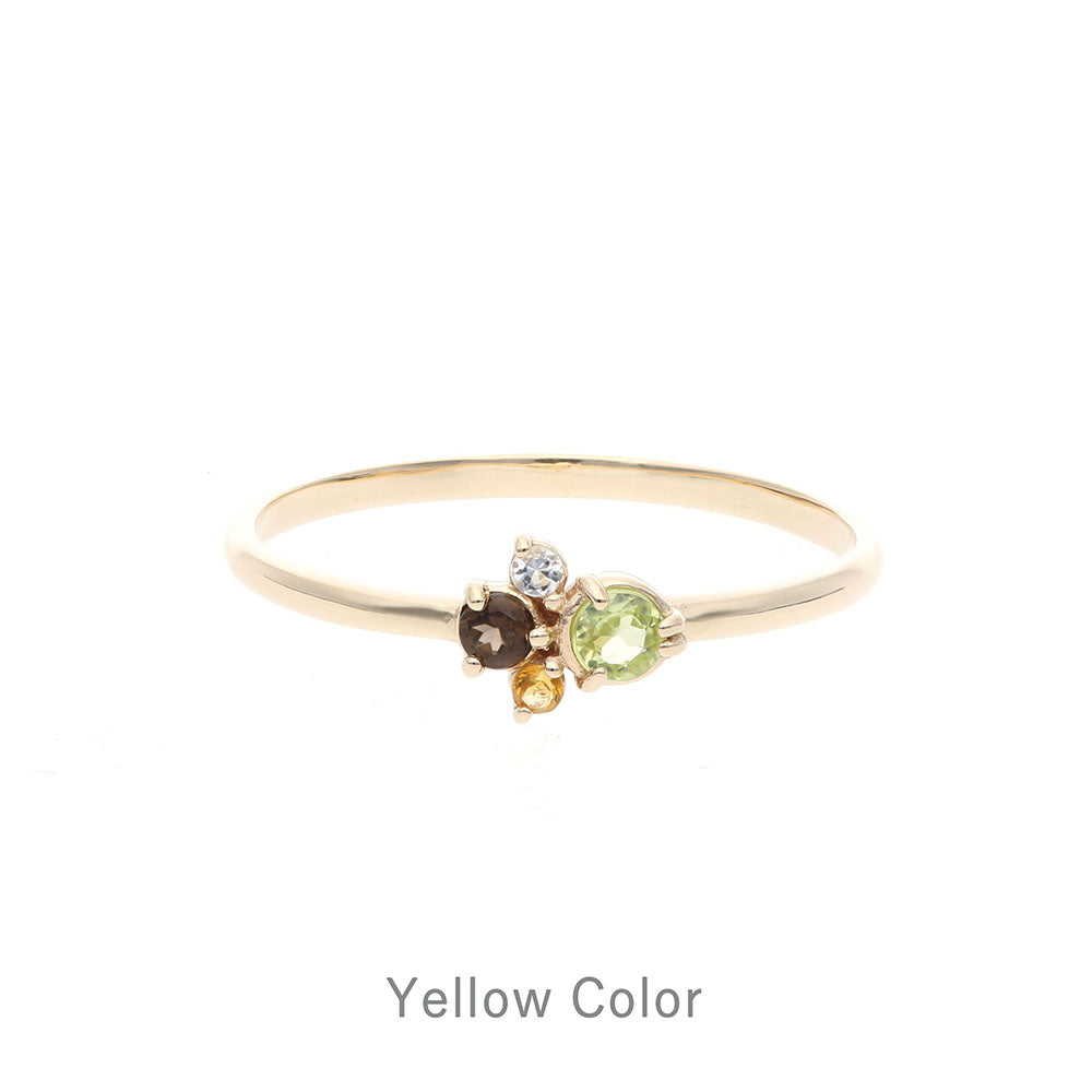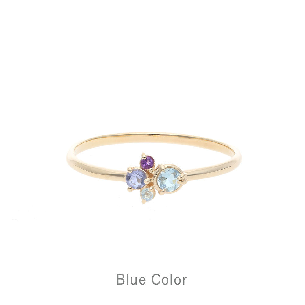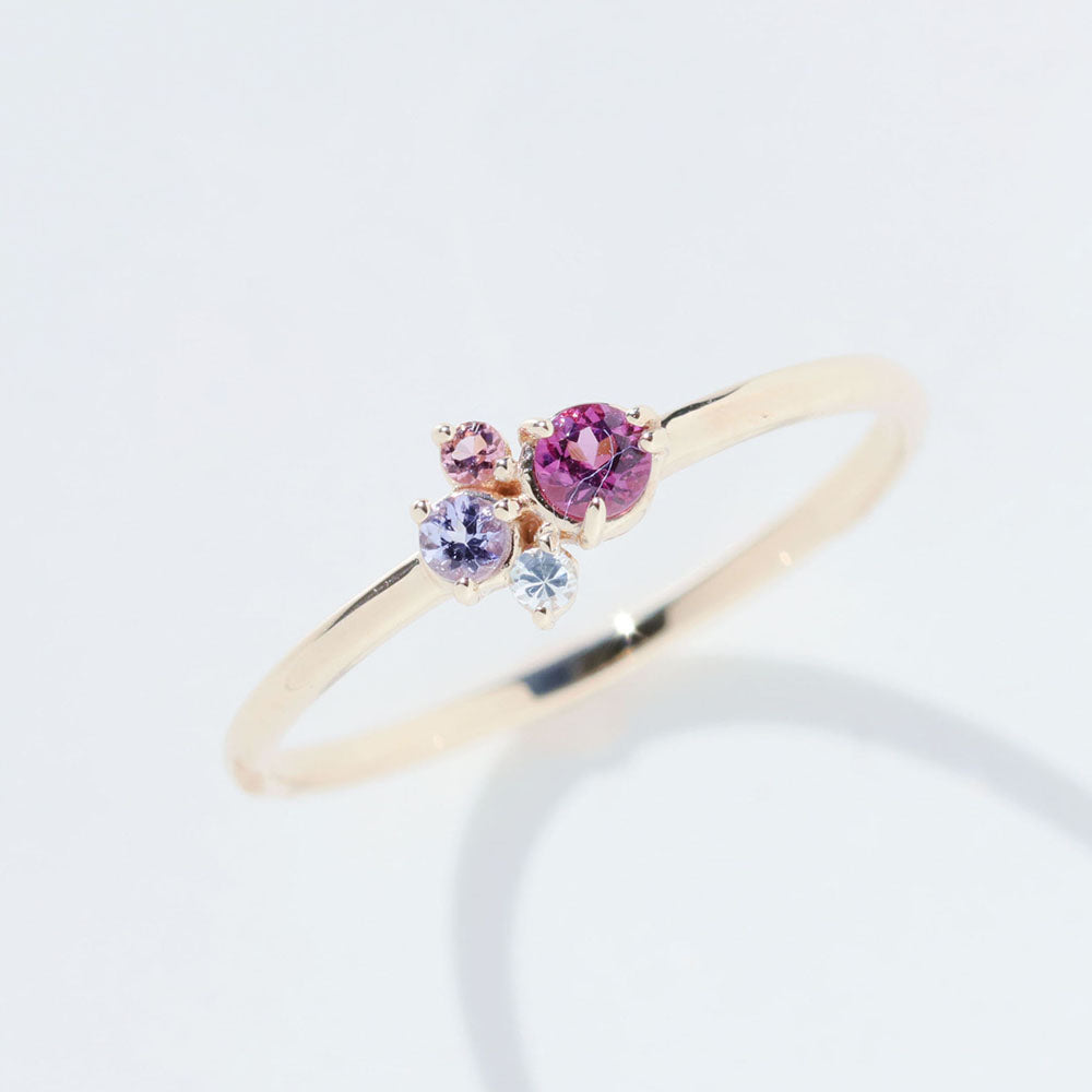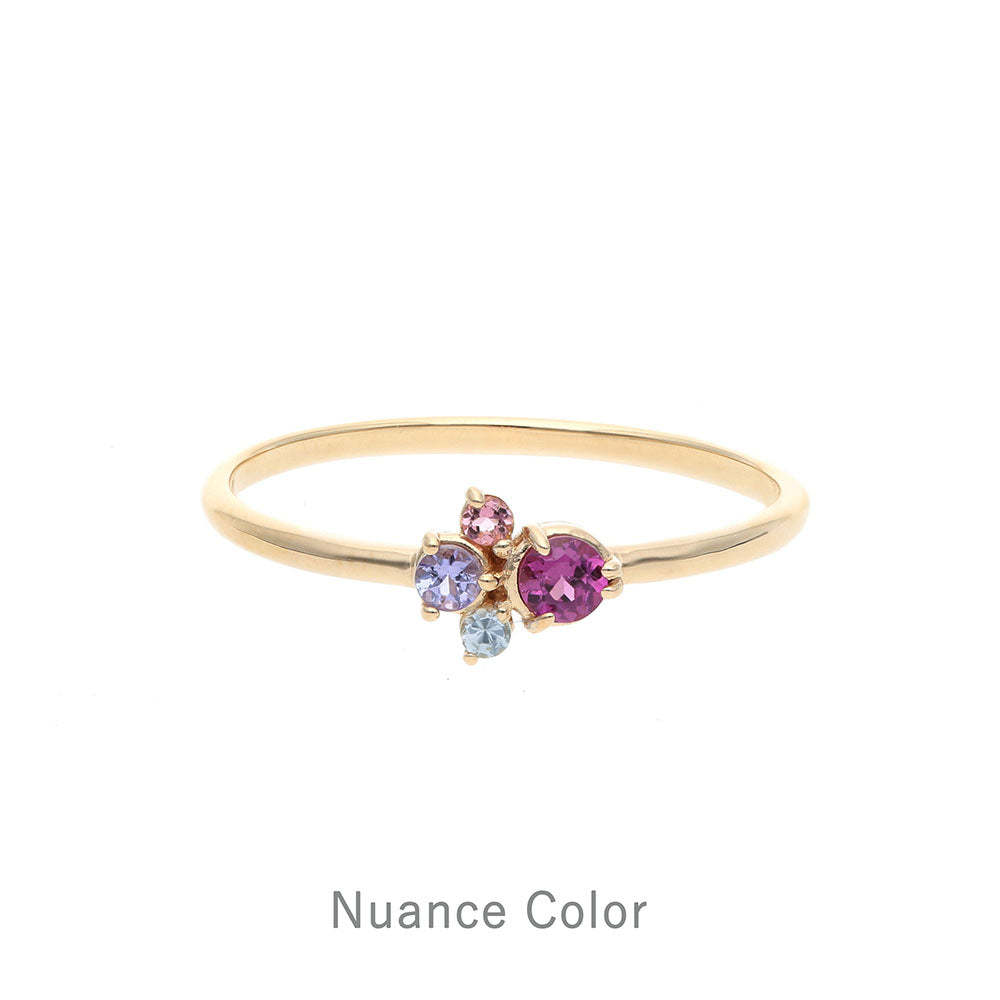 カラフルな天然石をイメージに合わせて配色した、マルチカラーストーンリング。
