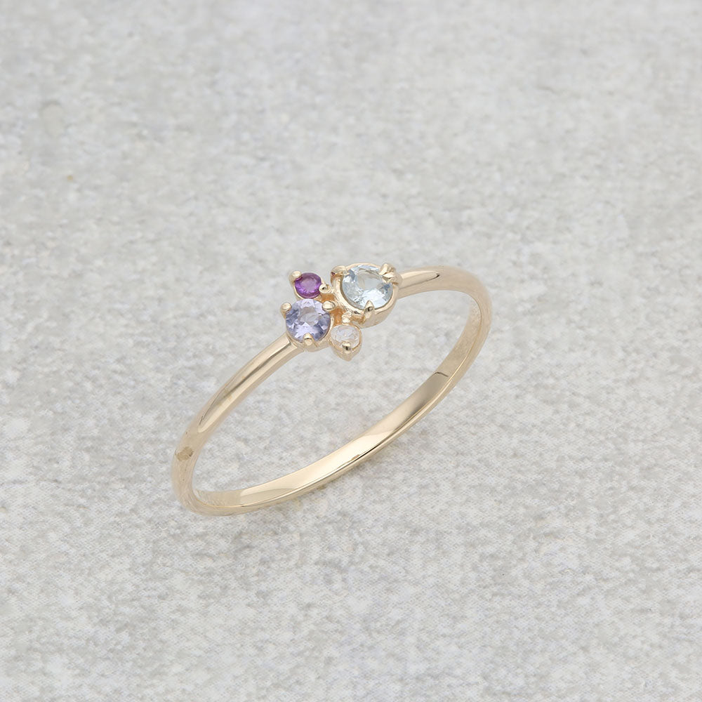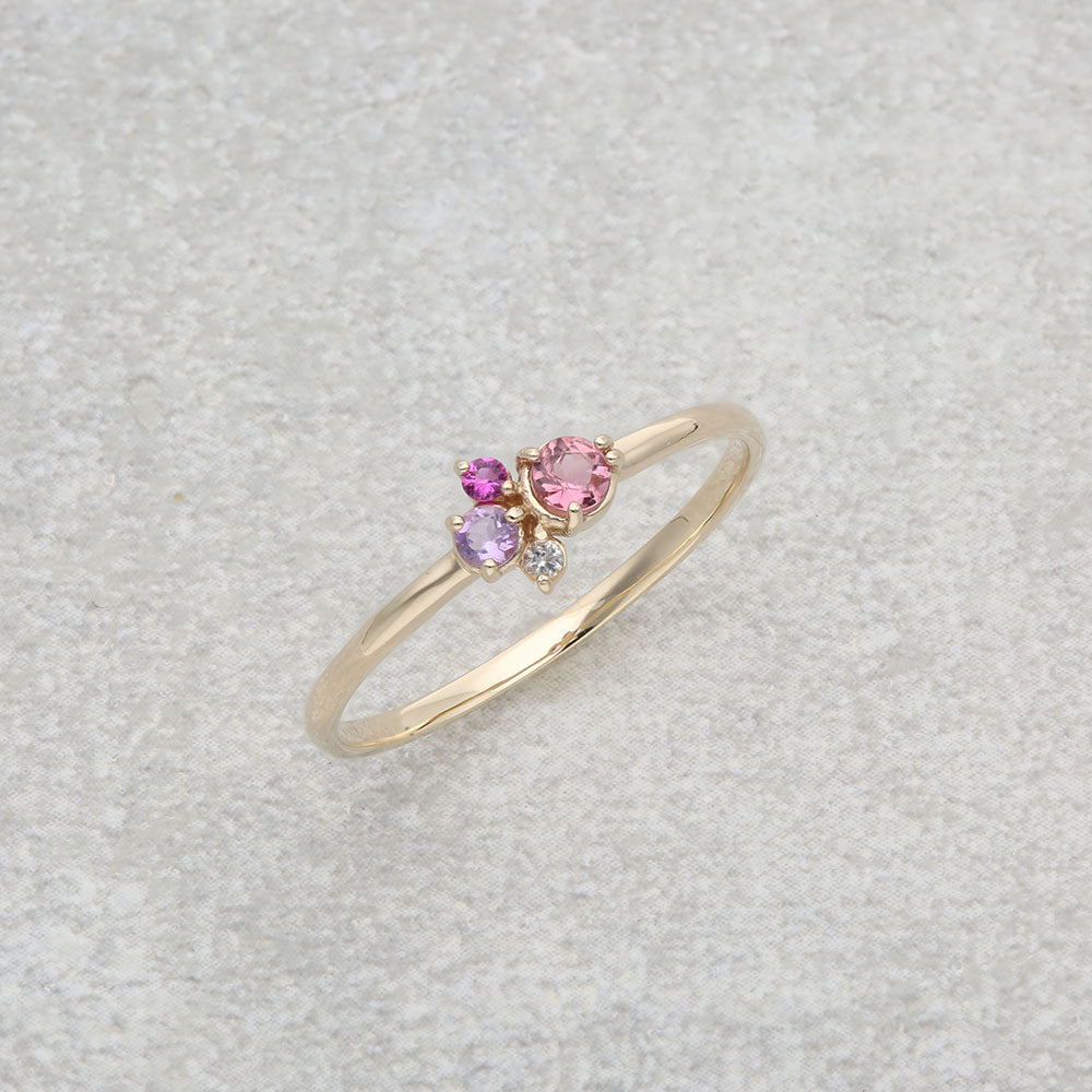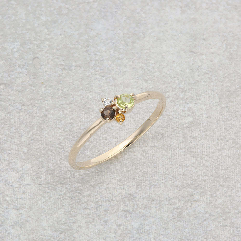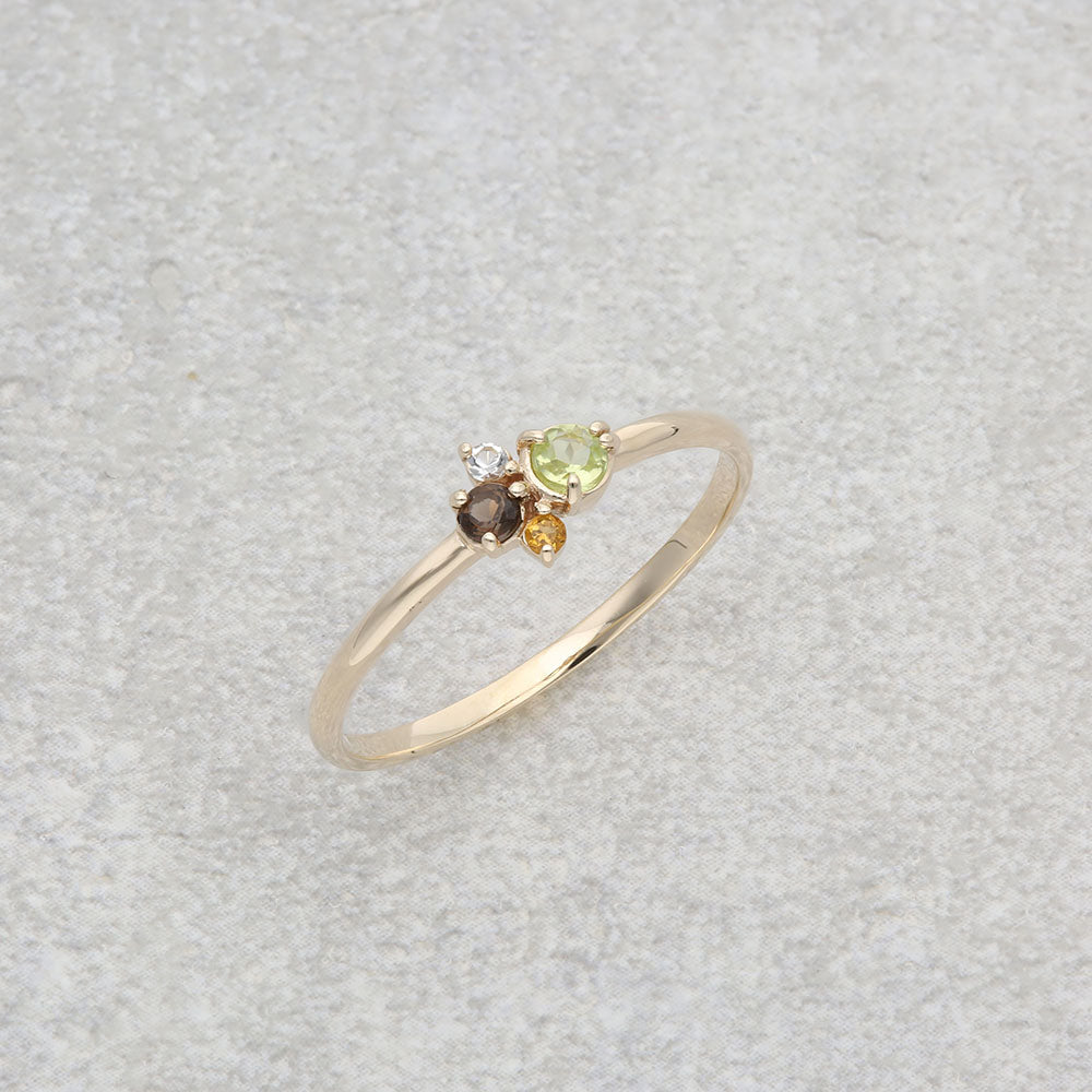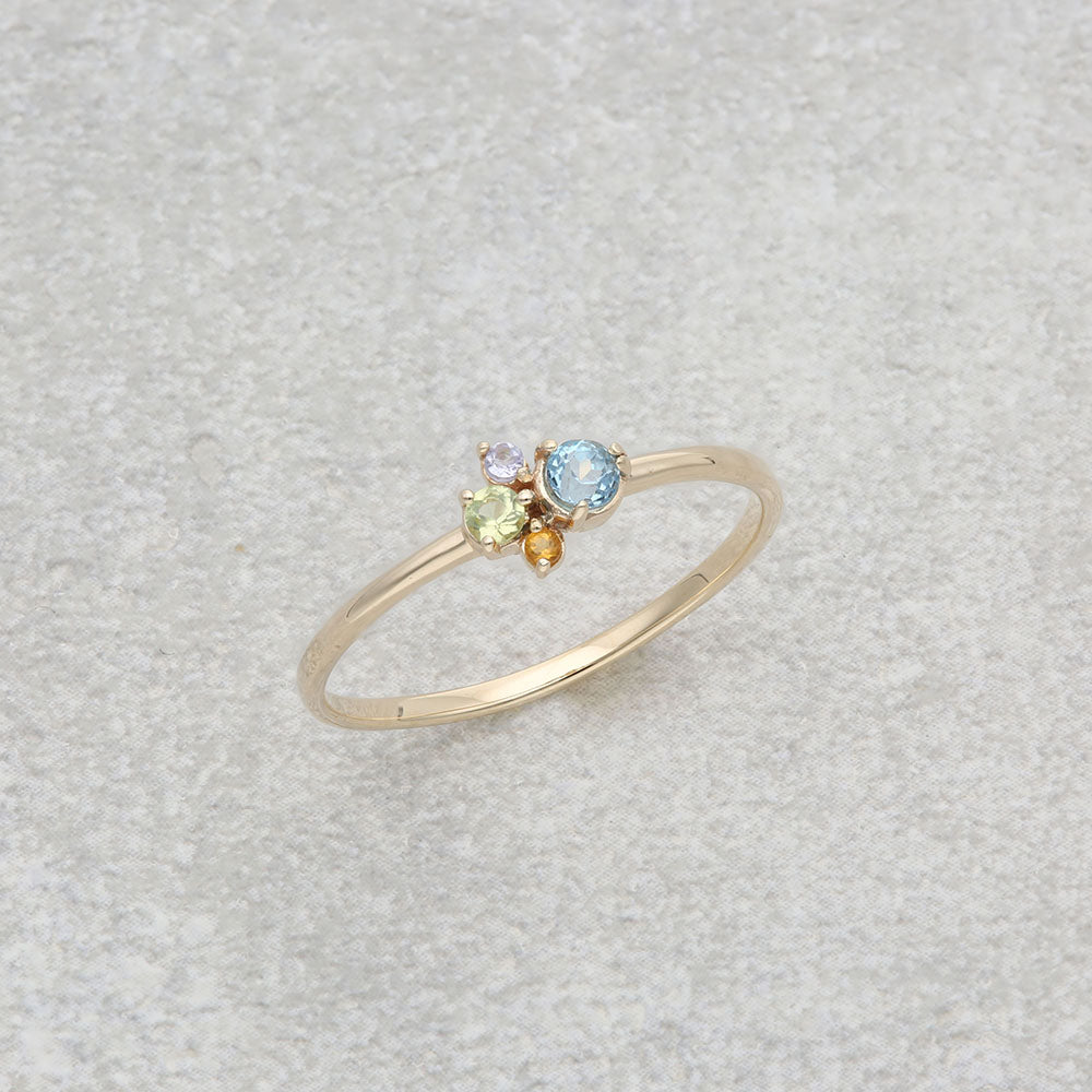 カラフルな天然石をイメージに合わせて配色した、マルチカラーストーンリング。
