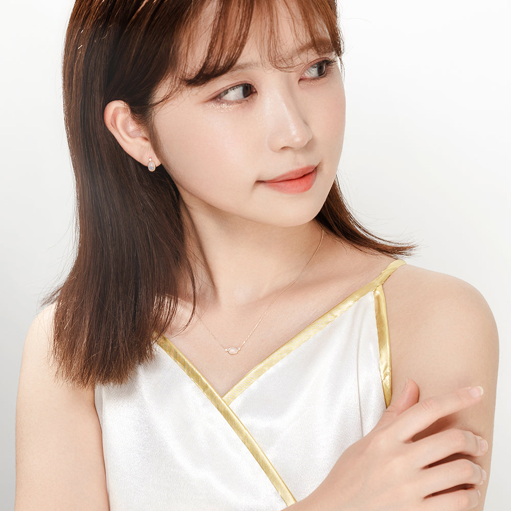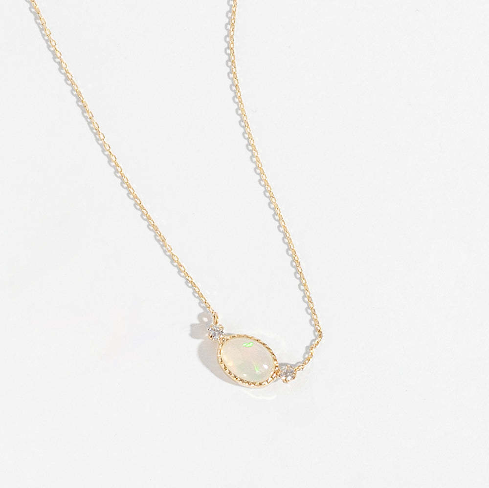 光の移ろいを閉じ込めたオパールとダイヤモンドをアクセントにした特別なネックレス。